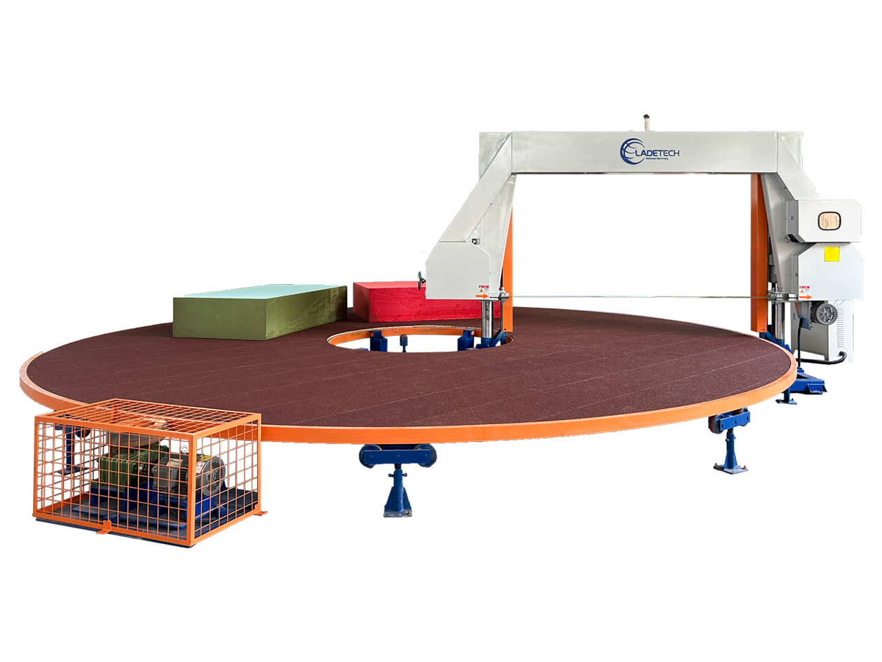 This machine is mostly used for slicing foam sheets from the foam blocks. There are options of 6m, 7m and 10m worktable diameter according to different production capacity. The cutting number, cutting thickness, foam density, working speed can be set by the control box. It has high automation level and working precision.